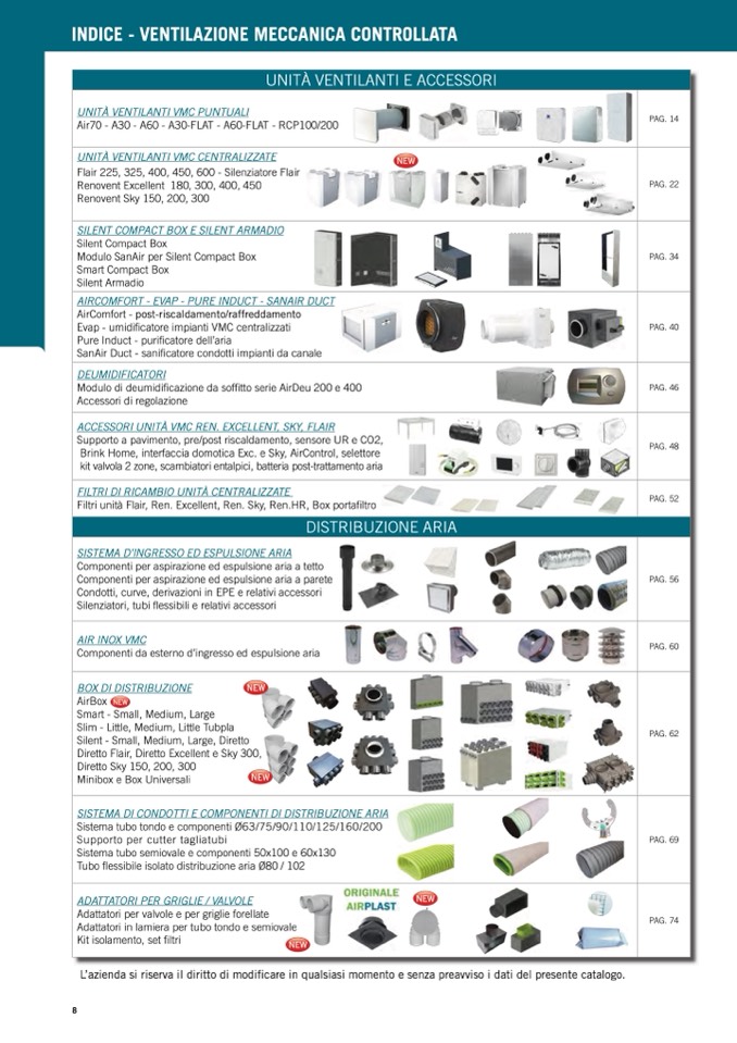 ACCESSORI UNITÀ VMC REN. EXCELLENT, SKY, FLAIR
