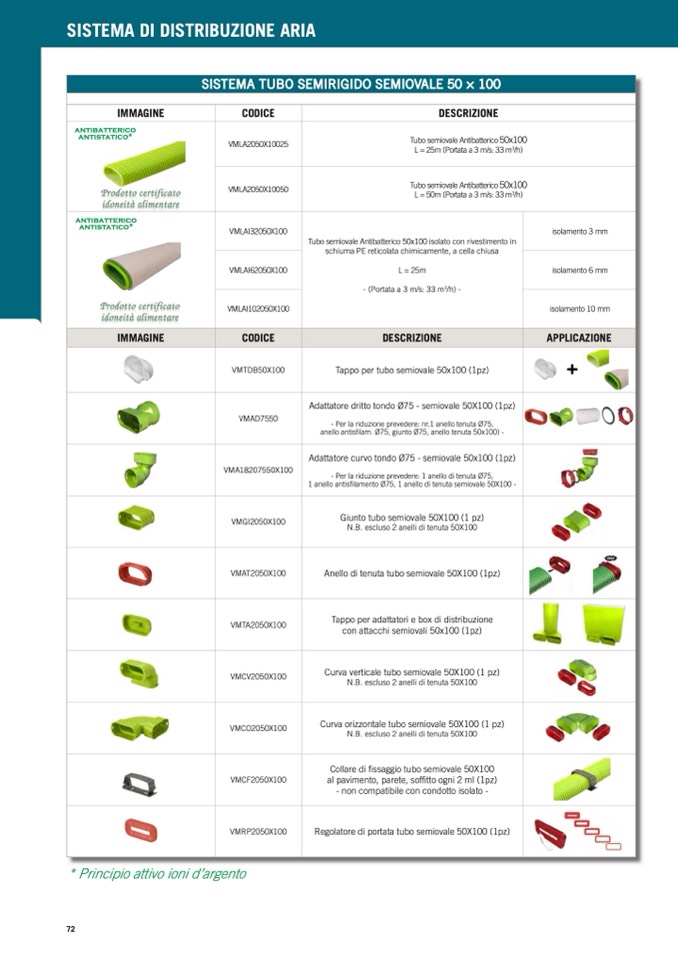 Tubo semiovale Antibatterico 50x100 isolato con rivestimento in