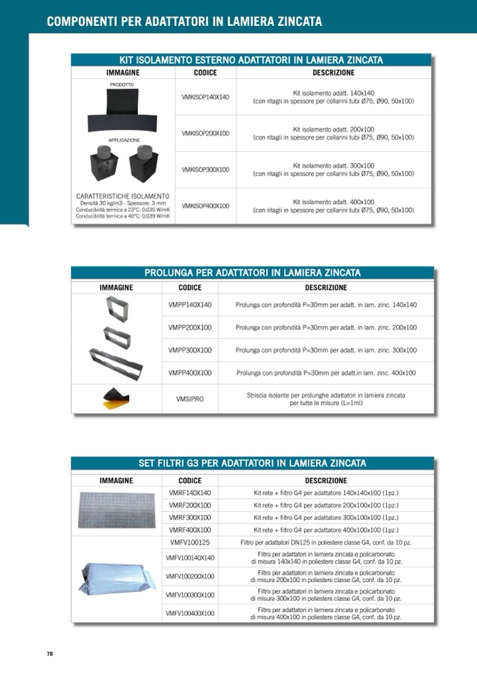 Filtro per adattatori in lamiera zincata e policarbonato