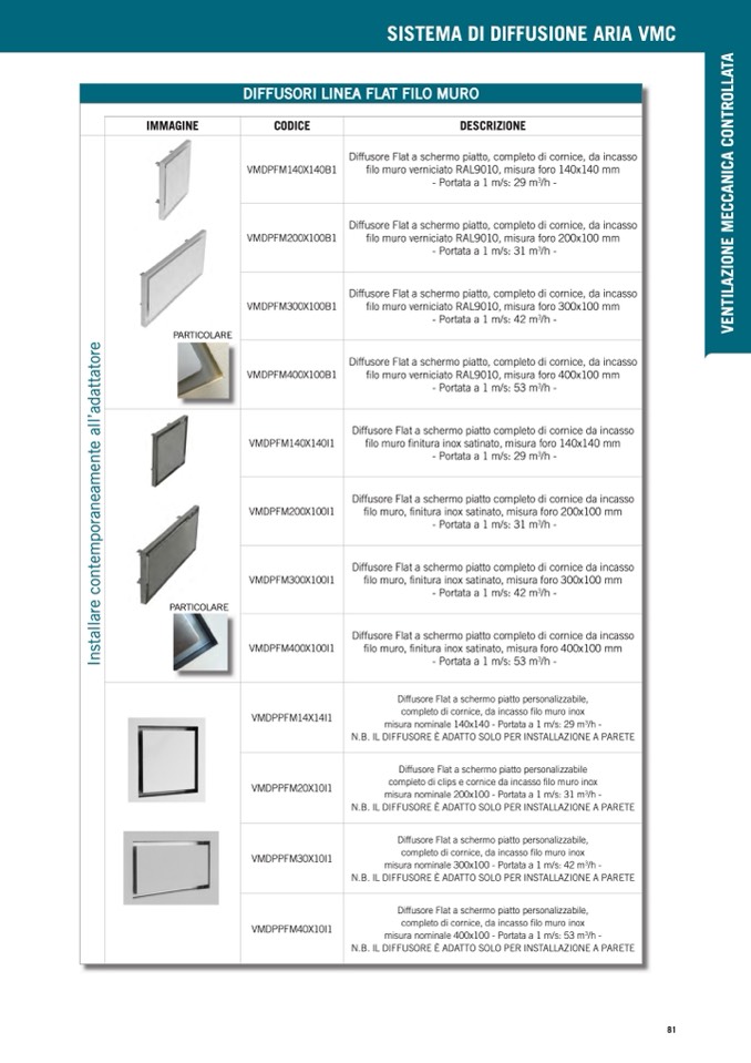 N.B. IL DIFFUSORE È ADATTO SOLO PER INSTALLAZIONE A PARETE