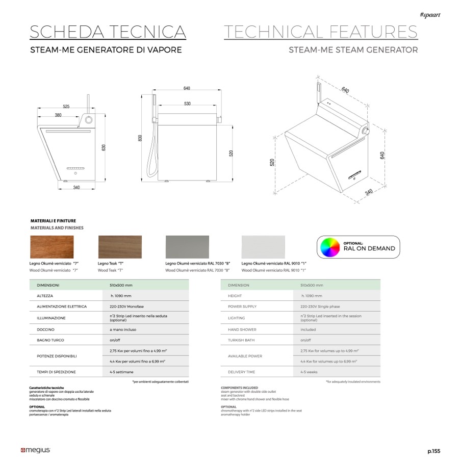 cromoterapia con n°2 Strip Led laterali installati nella seduta