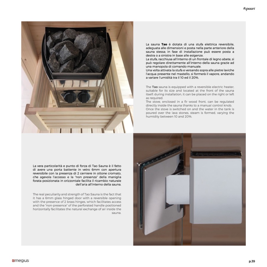 The Tao sauna is equipped with a reversible electric heater,