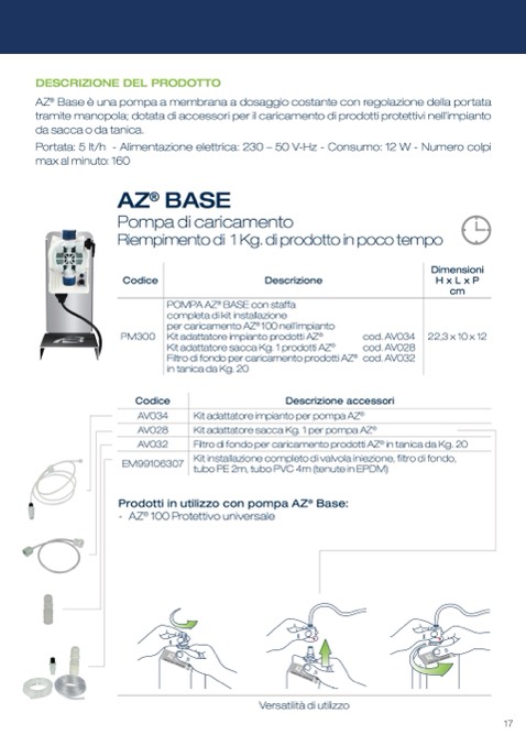 tramite manopola; dotata di accessori per il caricamento di prodotti protettivi nell'impianto