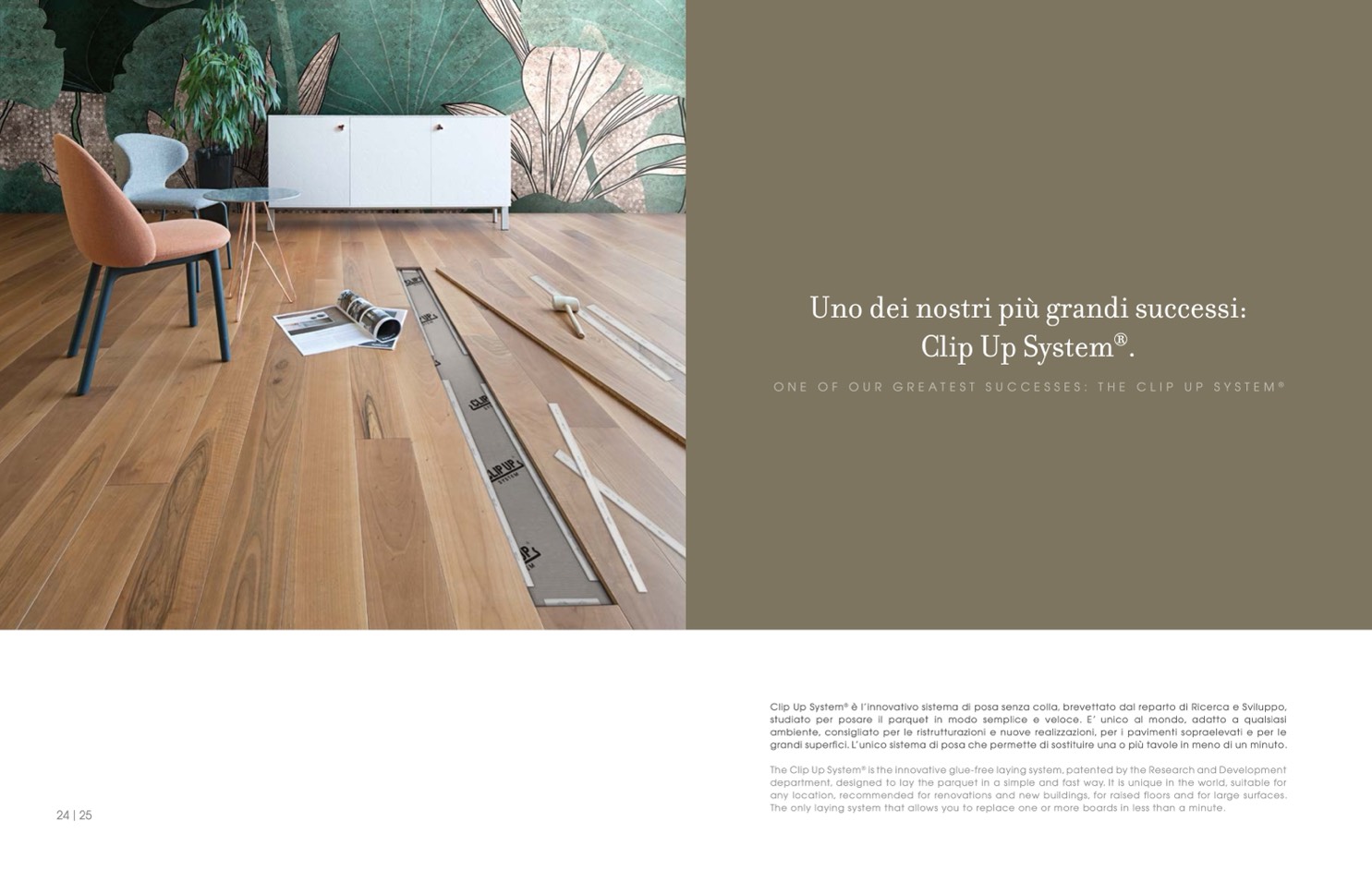 is the innovative glue-free laying system, patented by the Research and Development