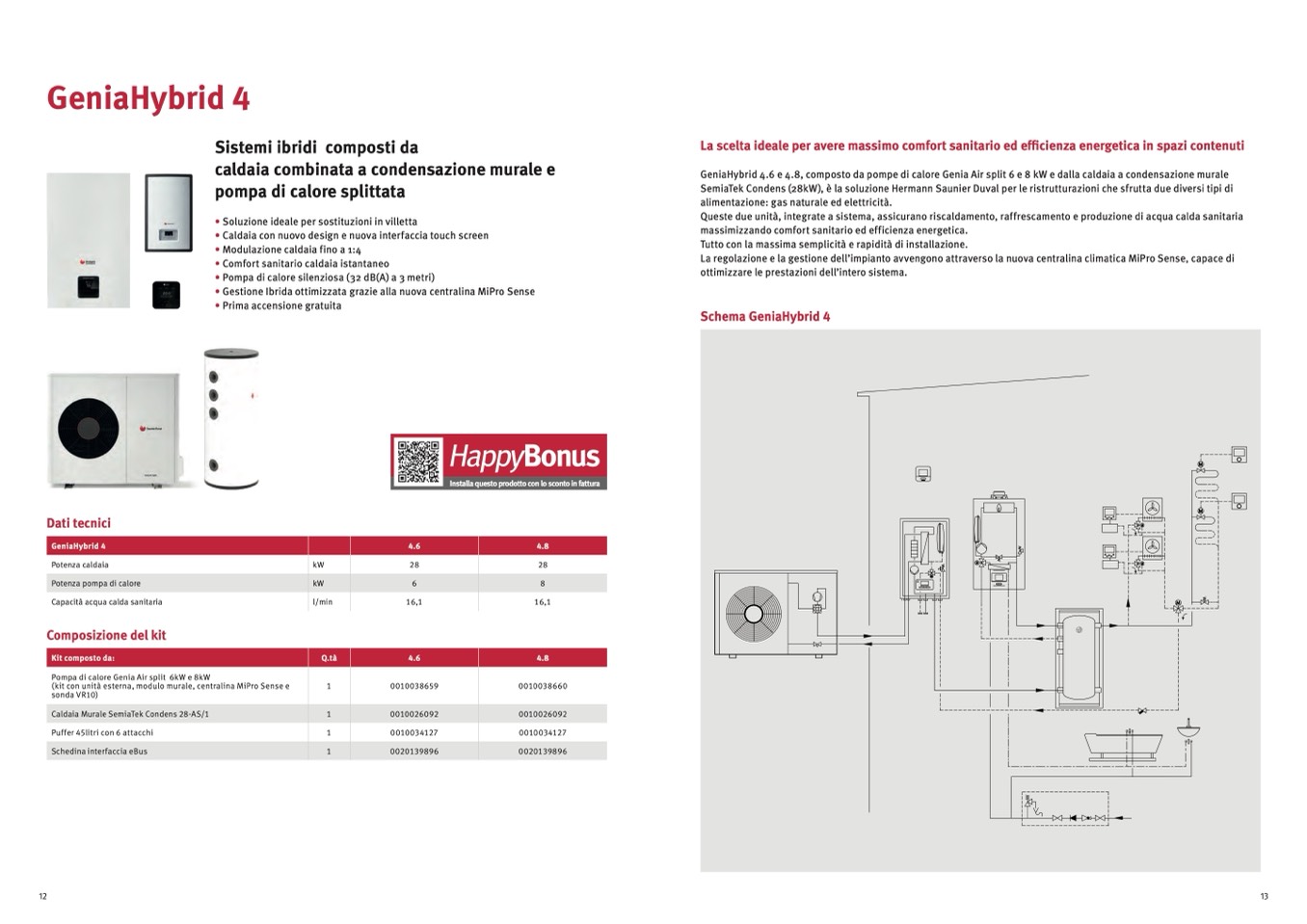 GeniaHybrid 4.6 e 4.8, composto da pompe di calore Genia Air split 6 e 8 kW e dalla caldaia a condensazione murale
