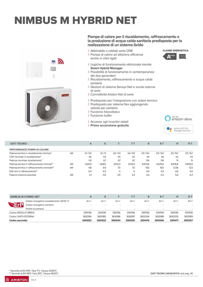 * Secondo la EN 14511. Taria 7°C, Tacqua 35/30°C