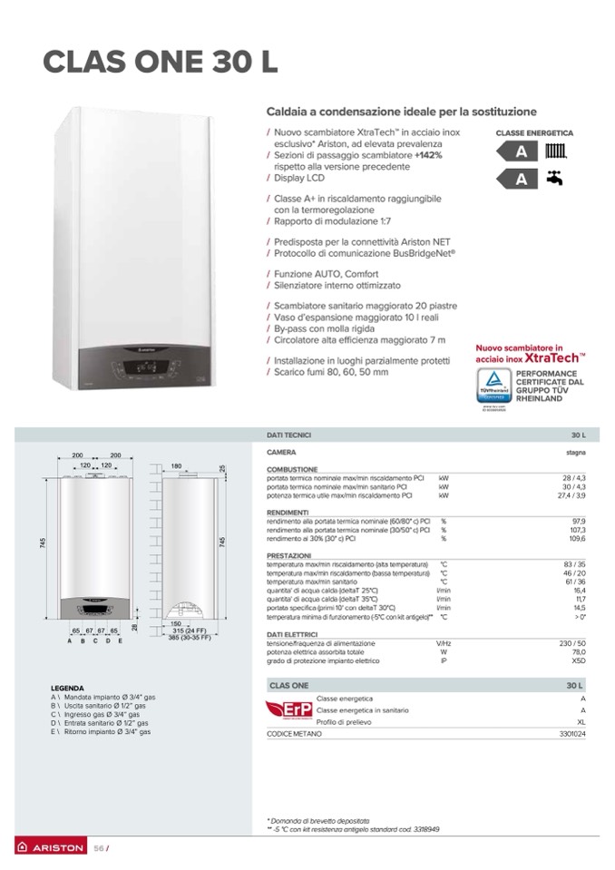 portata termica nominale max/min sanitario PCI