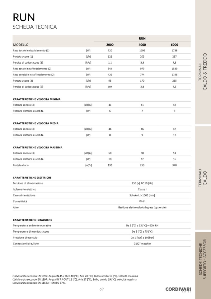 (1) Misurata secondo EN 1397: Acqua IN 45 / OUT 40 [°C], Aria 20 [°C], Bulbo umido 15 [°C], velocità massima