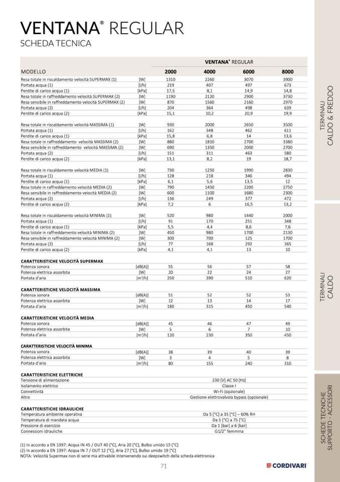 (1) In accordo a EN 1397: Acqua IN 45 / OUT 40 [°C], Aria 20 [°C], Bulbo umido 15 [°C]