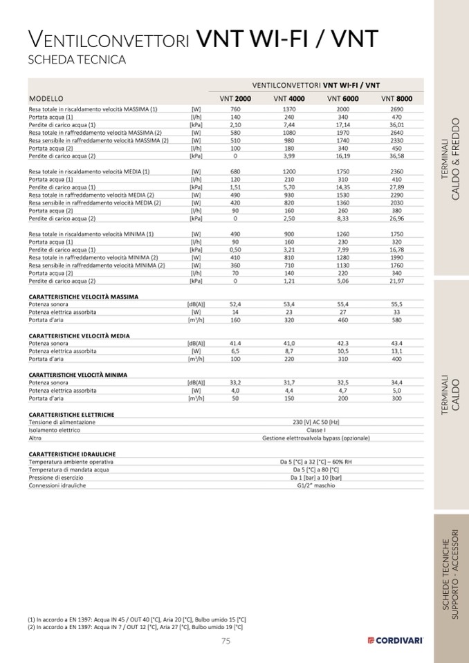(1) In accordo a EN 1397: Acqua IN 45 / OUT 40 [°C], Aria 20 [°C], Bulbo umido 15 [°C]