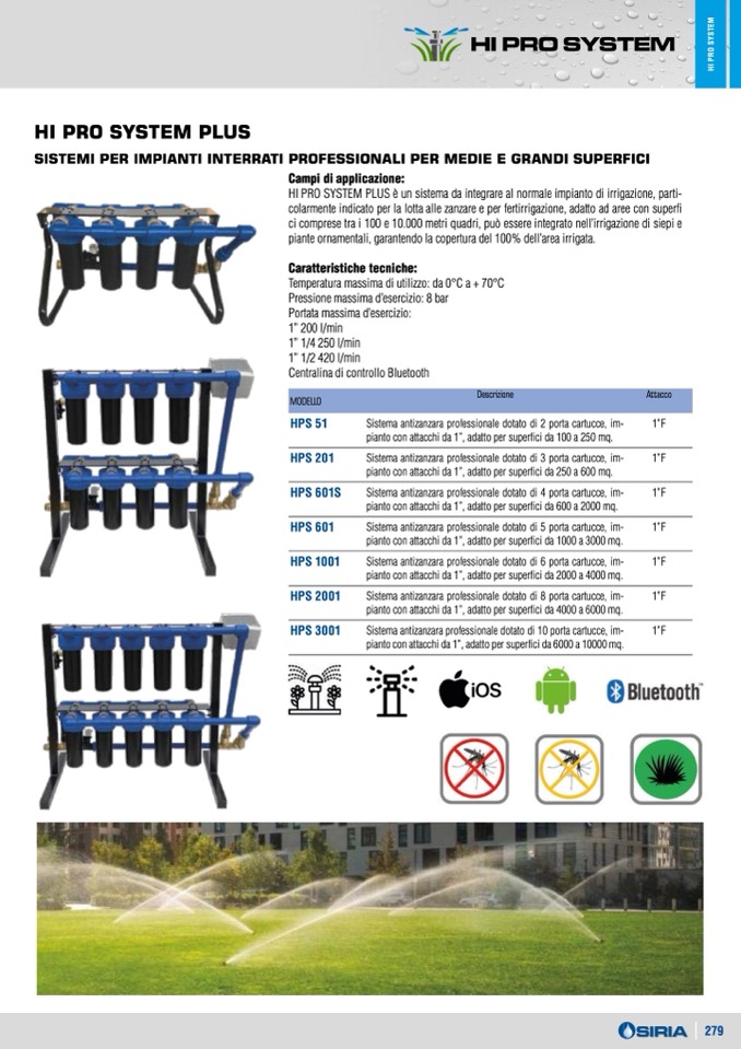 pianto con attacchi da 1”, adatto per superfici da 2000 a 4000 mq.