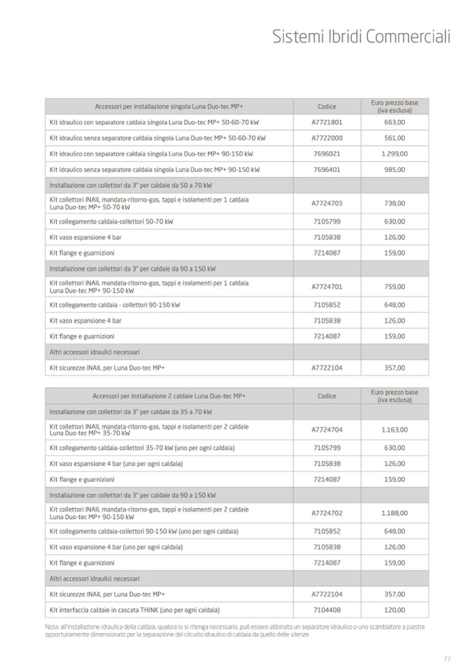Kit idraulico senza separatore caldaia singola Luna Duo-tec MP+ 90-150 kW