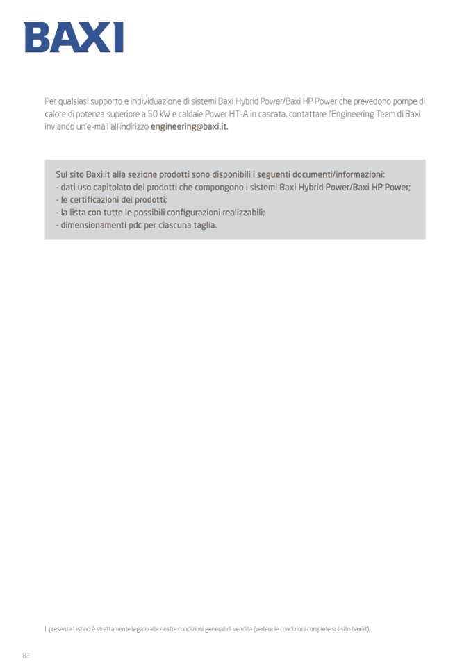 Il presente Listino è strettamente legato alle nostre condizioni generali di vendita (vedere le condizioni complete sul sito baxi.it).