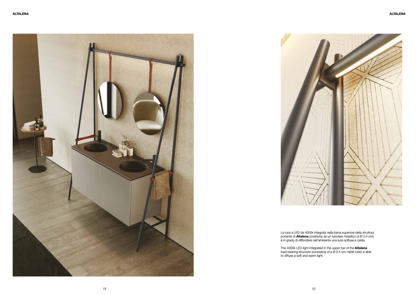 The 4000k LED light integrated in the upper bar of the Altalena
