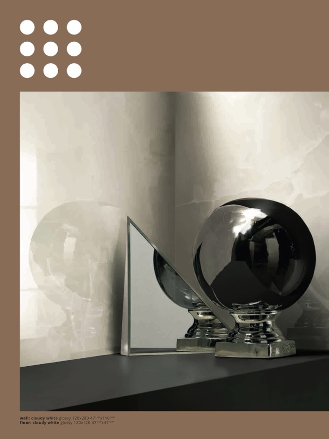 floor: cloudy white glossy 120x120 471/4”x471/4”