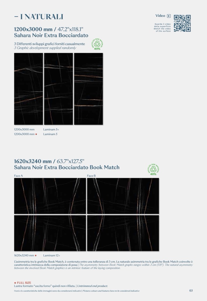 Lastra formato “uscita forno” quindi non rifilata. | Untrimmed end product.