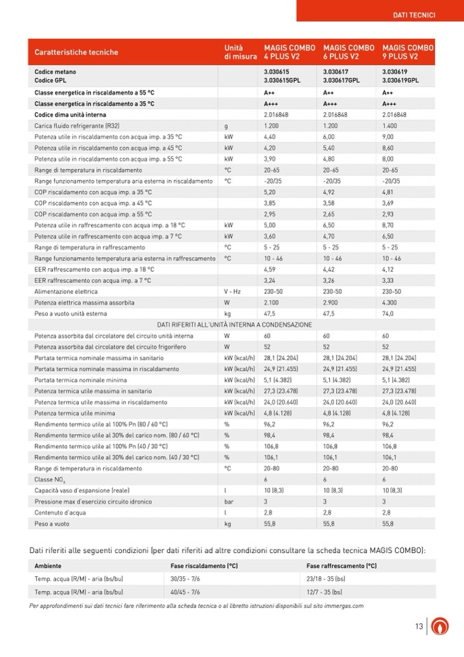 Per approfondimenti sui dati tecnici fare riferimento alla scheda tecnica o al libretto istruzioni disponibili sul sito immergas.com