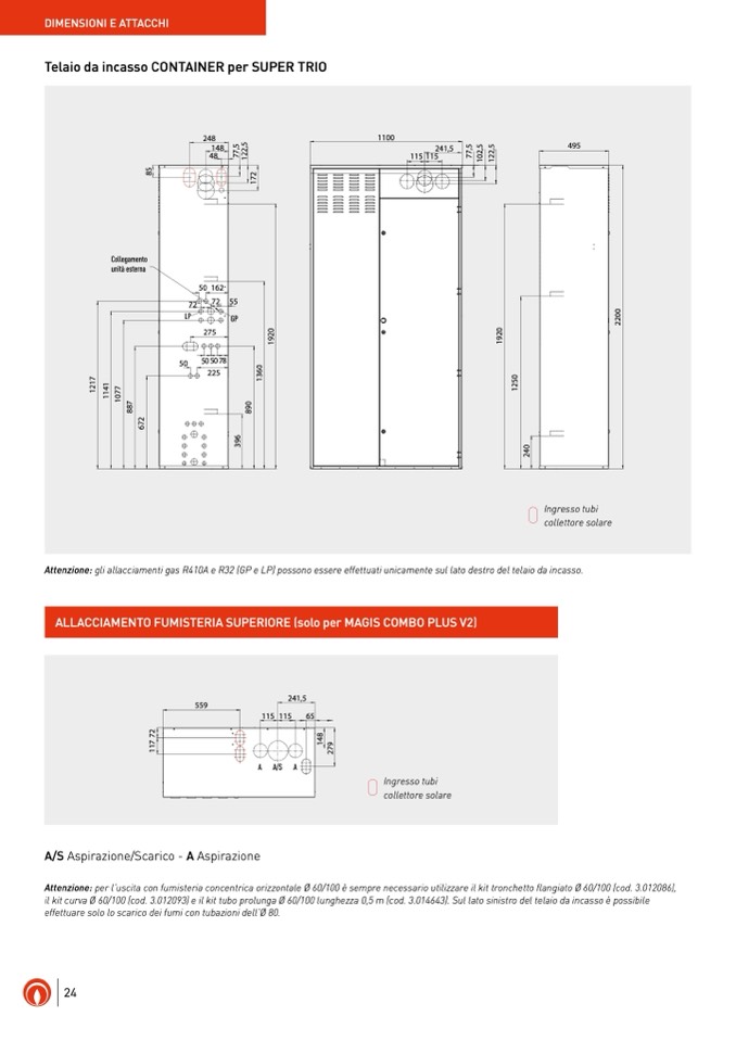 Attenzione: per l’uscita con fumisteria concentrica orizzontale Ø 60/100 è sempre necessario utilizzare il kit tronchetto flangiato Ø 60/100 (cod. 3.012086),