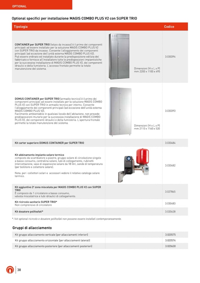 * I kit optional ricircolo e dosatore polifosfati non possono essere installati contemporaneamente.