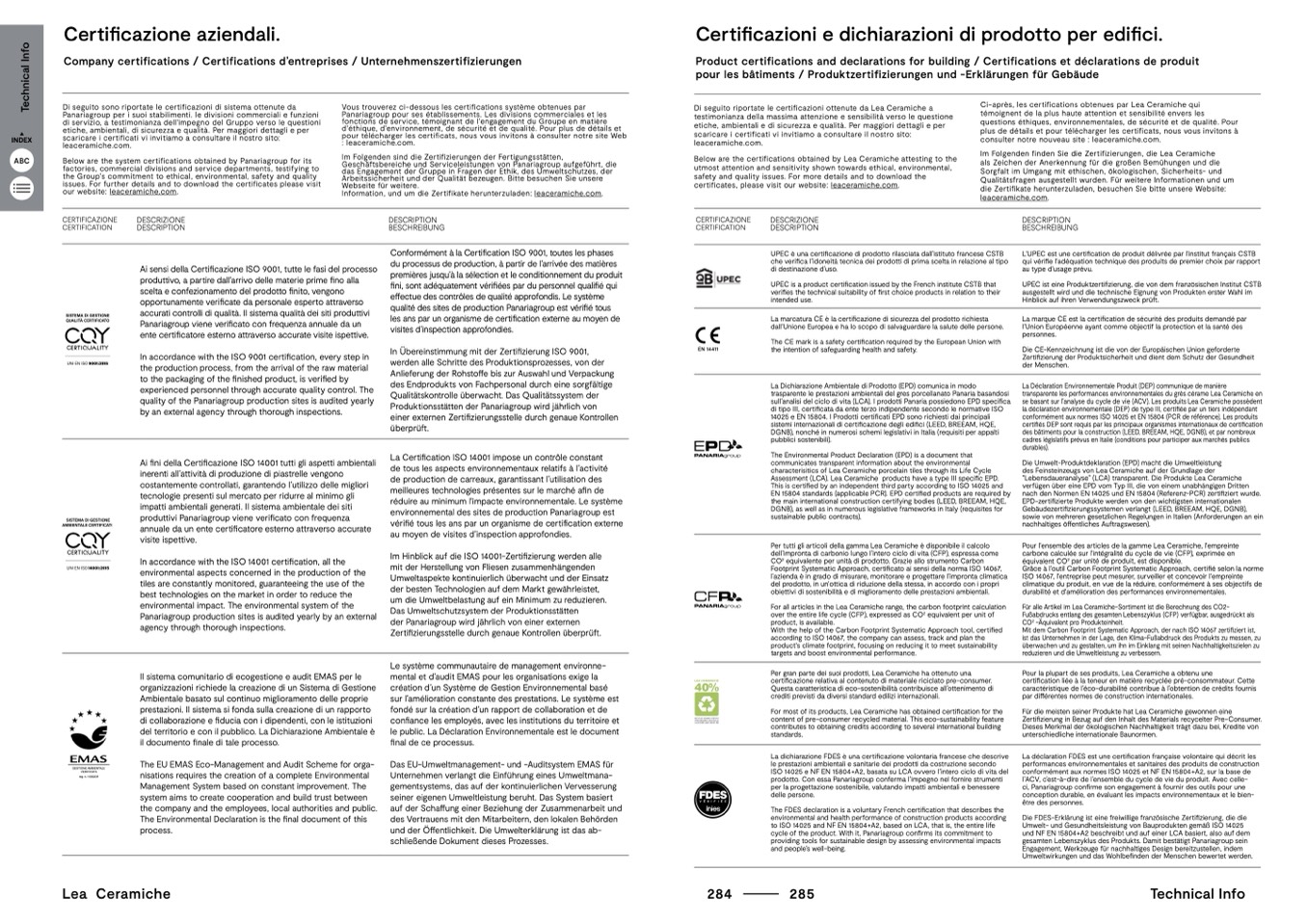Information, und um die Zertifikate herunterzuladen: leaceramiche.com.