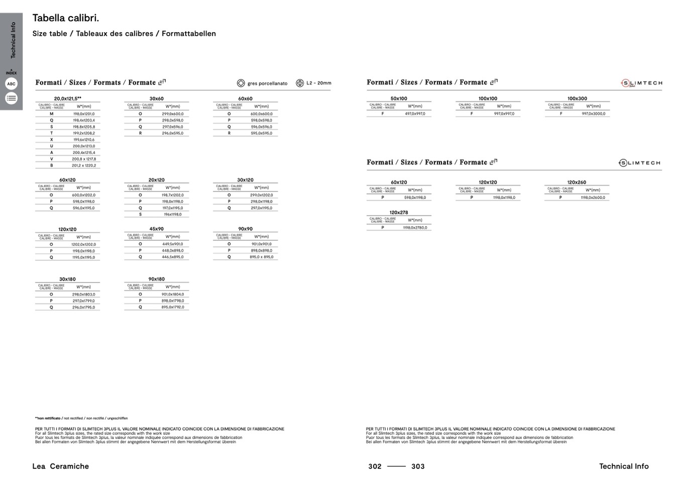 PER TUTTI I FORMATI DI SLIMTECH 3PLUS IL VALORE NOMINALE INDICATO COINCIDE CON LA DIMENSIONE DI FABBRICAZIONE