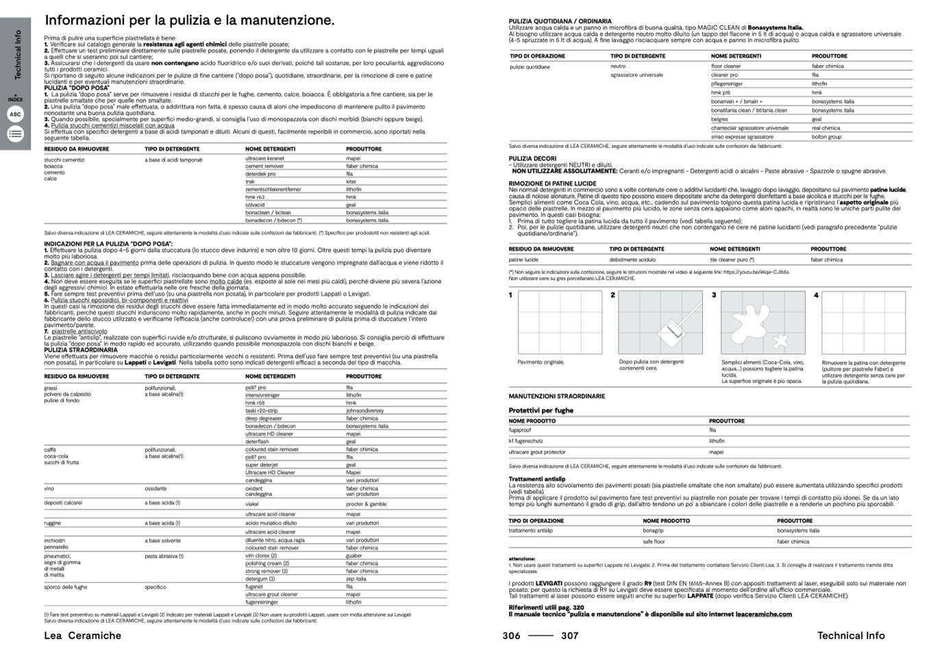 Il manuale tecnico “pulizia e manutenzione” è disponibile sul sito internet leaceramiche.co
