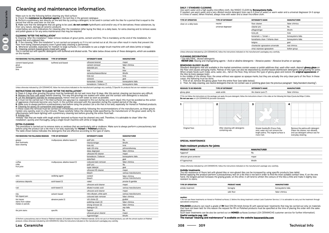 The manual “cleaning and maintenance” is available on the website leaceramiche.com