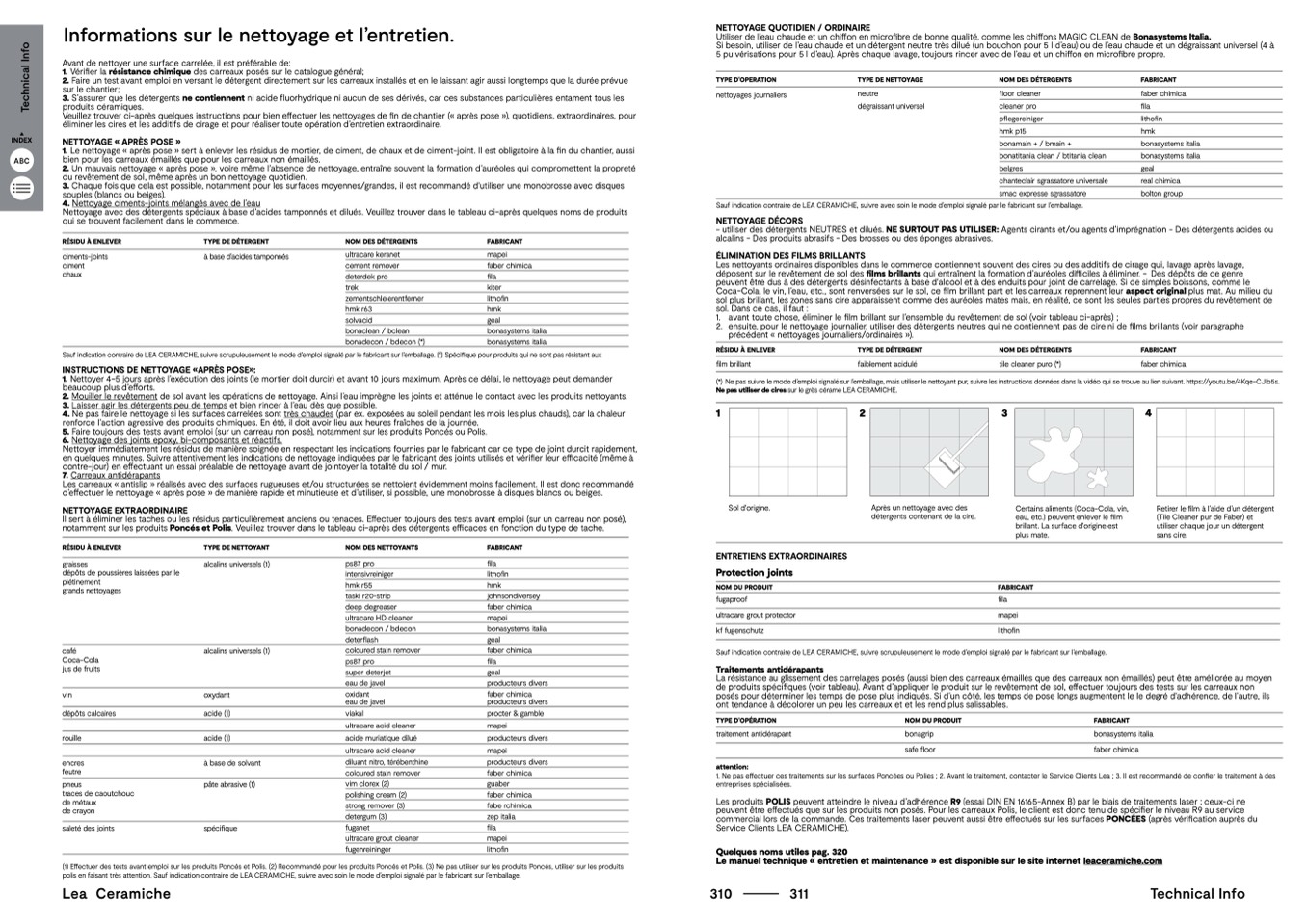 1. Le nettoyage « après pose » sert à enlever les résidus de mortier, de ciment, de chaux et de ciment-joint. Il est obligatoire à la