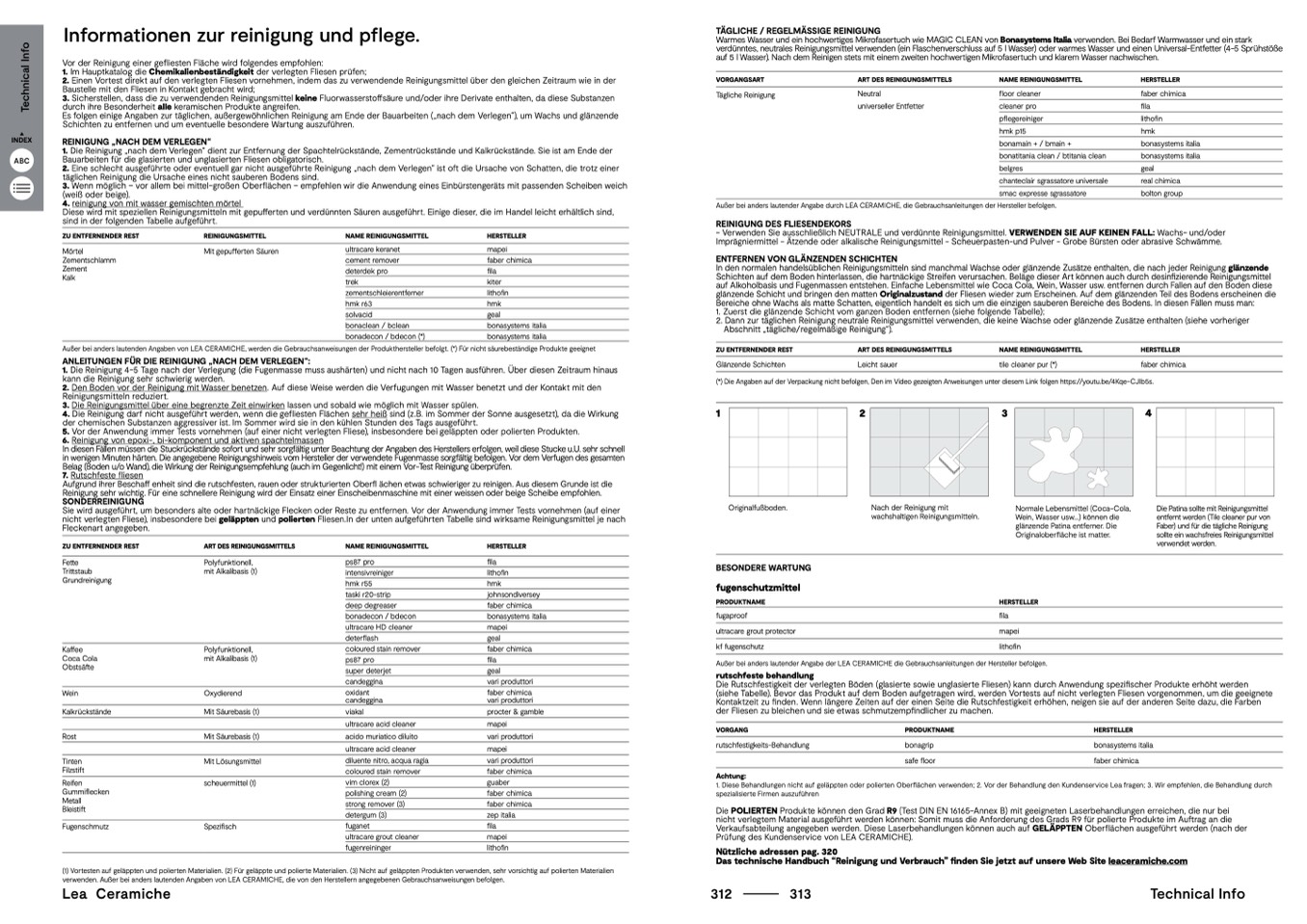 Außer bei anders lautender Angabe der LEA CERAMICHE die Gebrauchsanleitungen der Hersteller befolgen