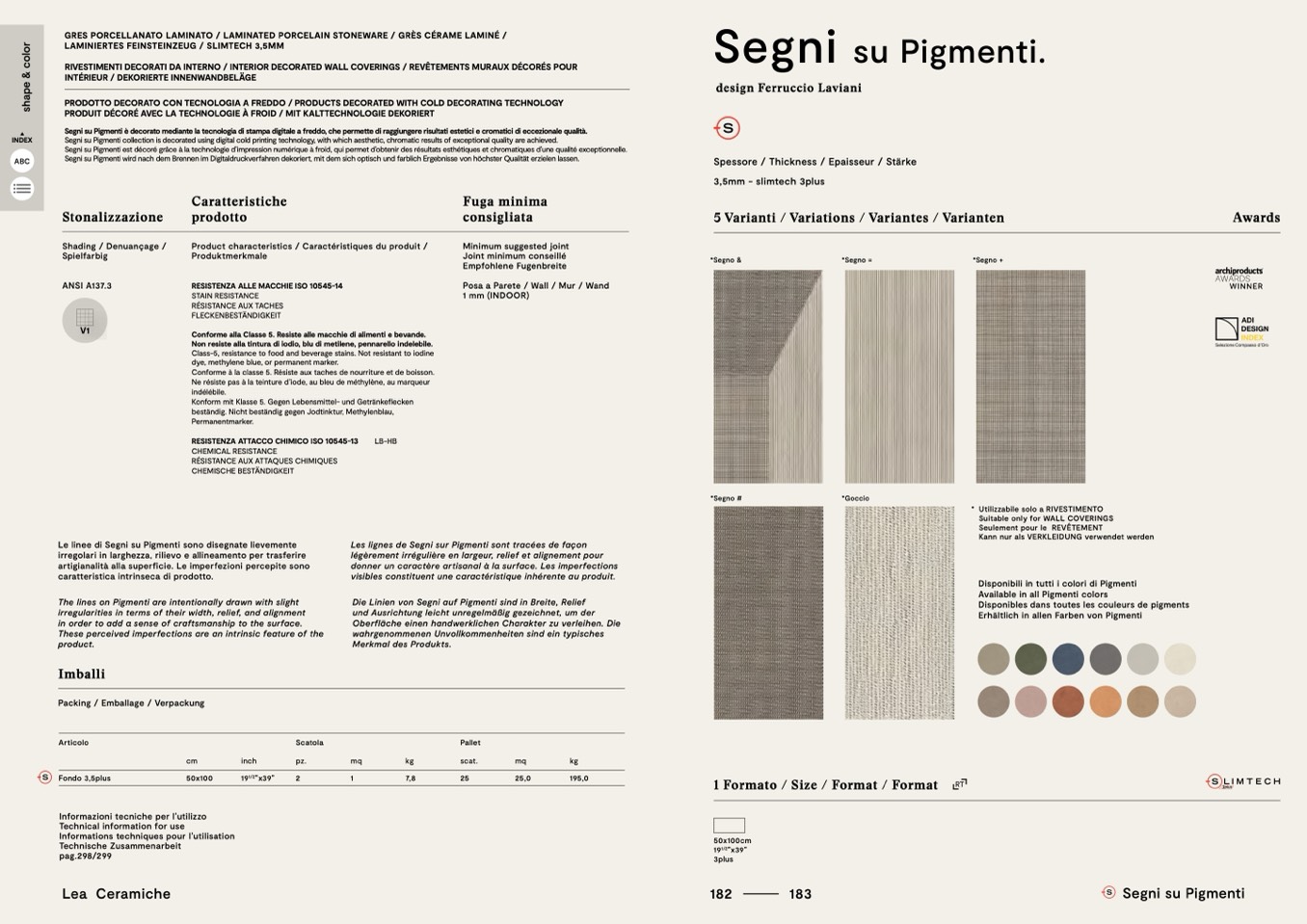 Segni su Pigmenti est décoré grâce à la technologie d’impression numérique à froid, qui permet d’obtenir des résultats esthétiques et chromatiques d’une qualité exceptionnelle