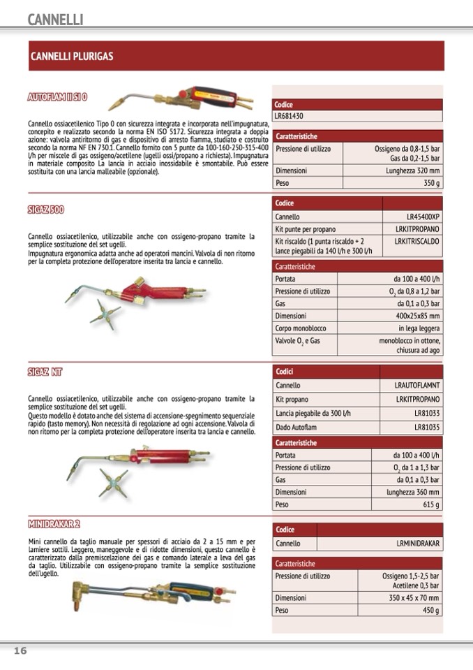 da taglio. Utilizzabile con ossigeno-propano tramite la semplice sostituzione