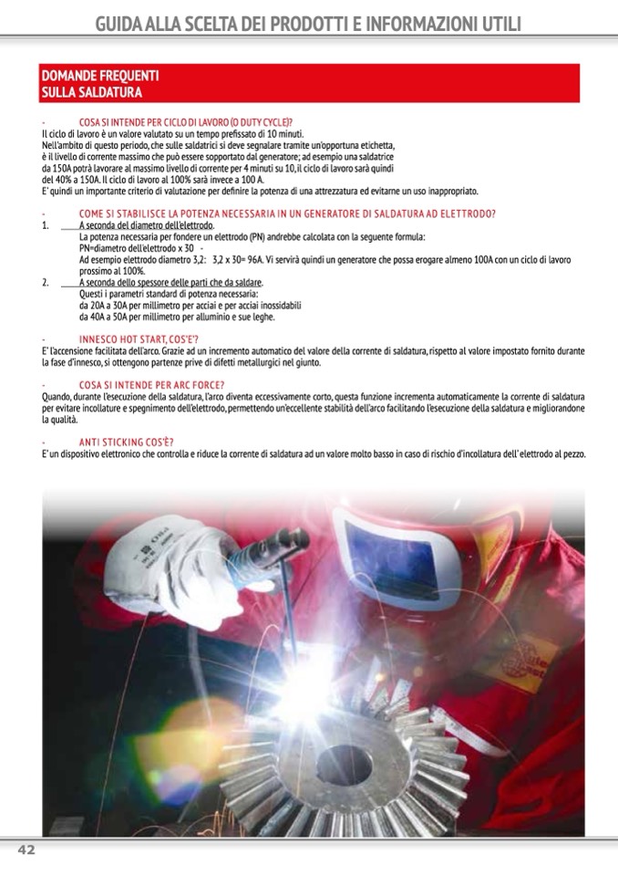 Ad esempio elettrodo diametro 3,2: 3,2 x 30= 96A. Vi servirà quindi un generatore che possa erogare almeno 100A con un ciclo di lavoro