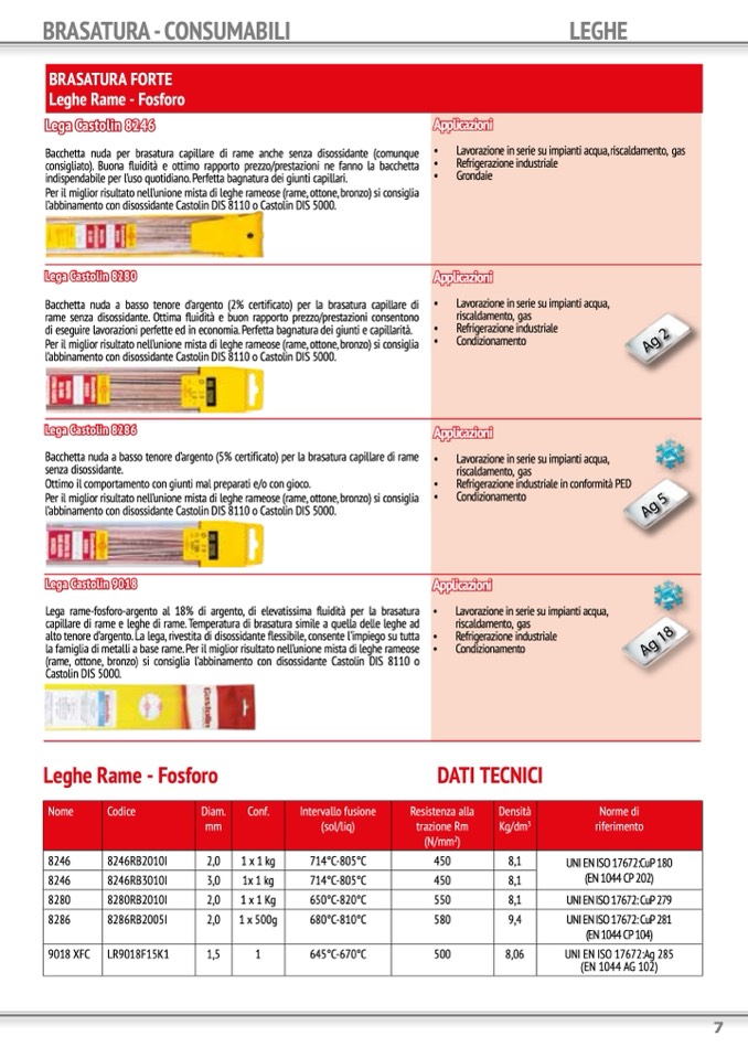 Lega rame-fosforo-argento al 18% di argento, di elevatissima fluidità per la brasatura