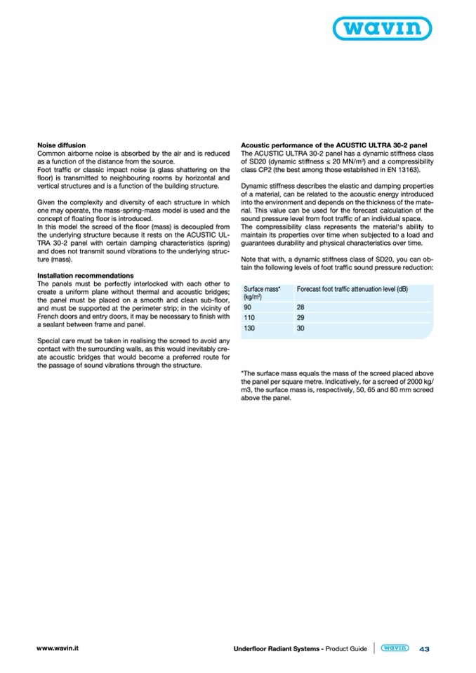 the panel per square metre. Indicatively, for a screed of 2000 kg/