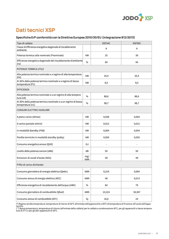 (**) Bassa temperatura: temperatura di ritorno (all’entrata della caldaia) per le caldaie a condensazione 30°C, per gli apparecchi a bassa tempera-