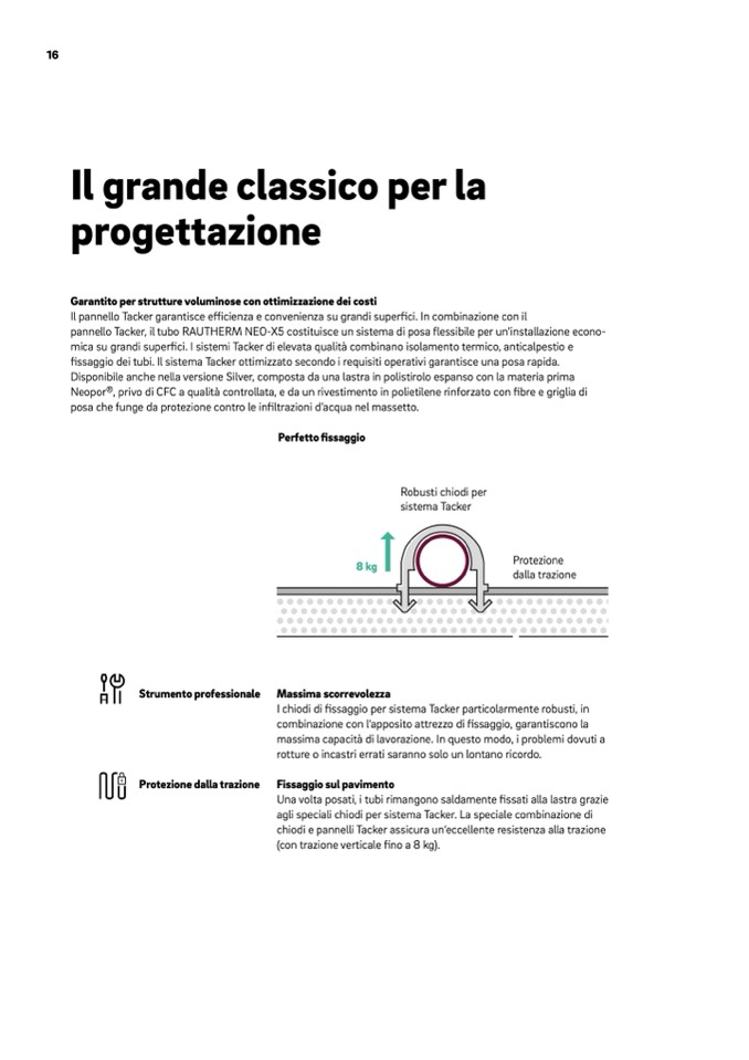 fissaggio dei tubi. Il sistema Tacker ottimizzato secondo i requisiti operativi garantisce una posa rapida.