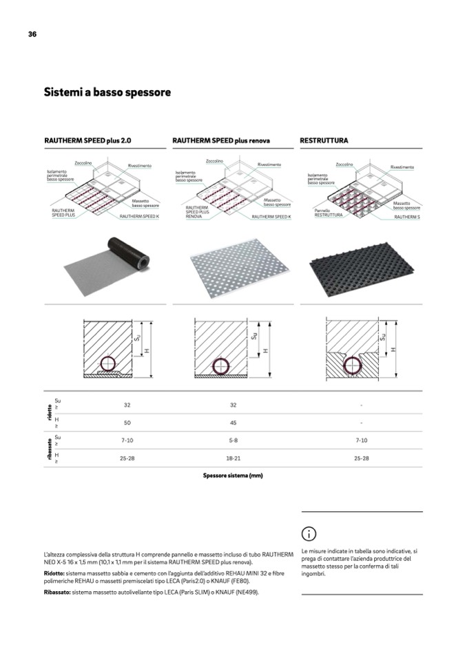 L’altezza complessiva della struttura H comprende pannello e massetto incluso di tubo RAUTHERM