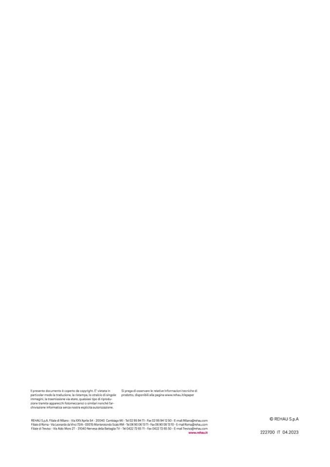 REHAU S.p.A. Filiale di Milano - Via XXV Aprile 54 - 20040 Cambiago MI - Tel 02 95 94 11 - Fax 02 95 94 12 50 - E-mail Milano@rehau.com