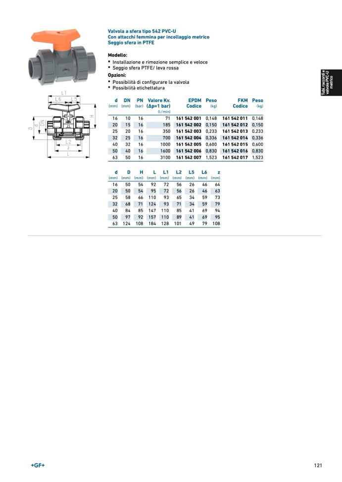 Valvola a sfera tipo 542 PVC-