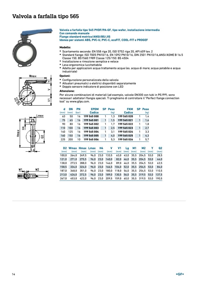 Valvola a farfalla tipo 565 PVDF/PA-GF, tipo wafer, installazione intermedia