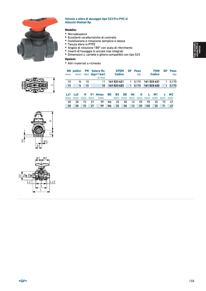 Valvola a sfera di dosaggio tipo 523 Pro PVC-