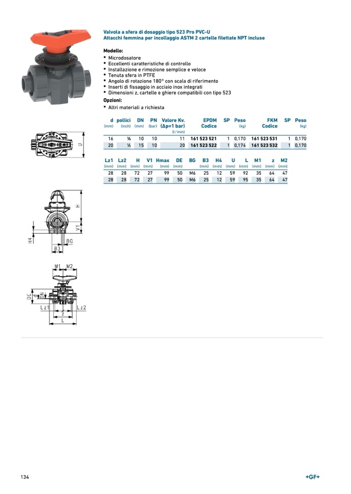 Valvola a sfera di dosaggio tipo 523 Pro PVC-