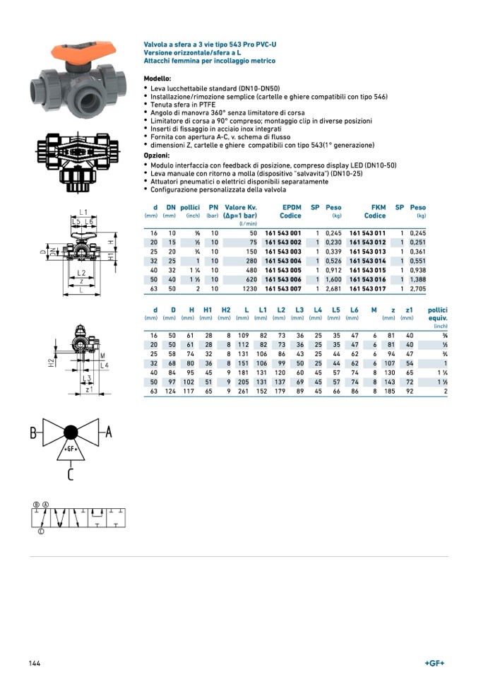 Valvola a sfera a 3 vie tipo 543 Pro PVC-