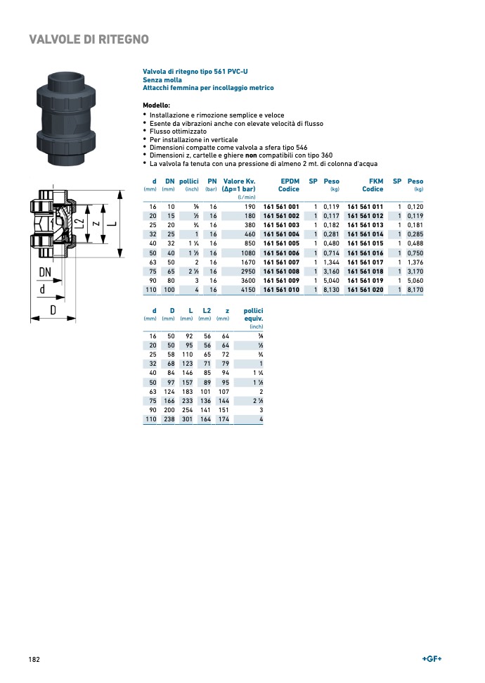 Valvola di ritegno tipo 561 PVC-U