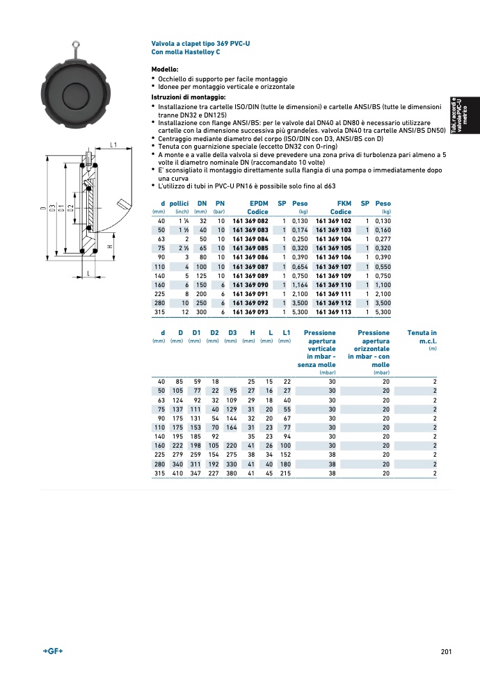 Valvola a clapet tipo 369 PVC-
