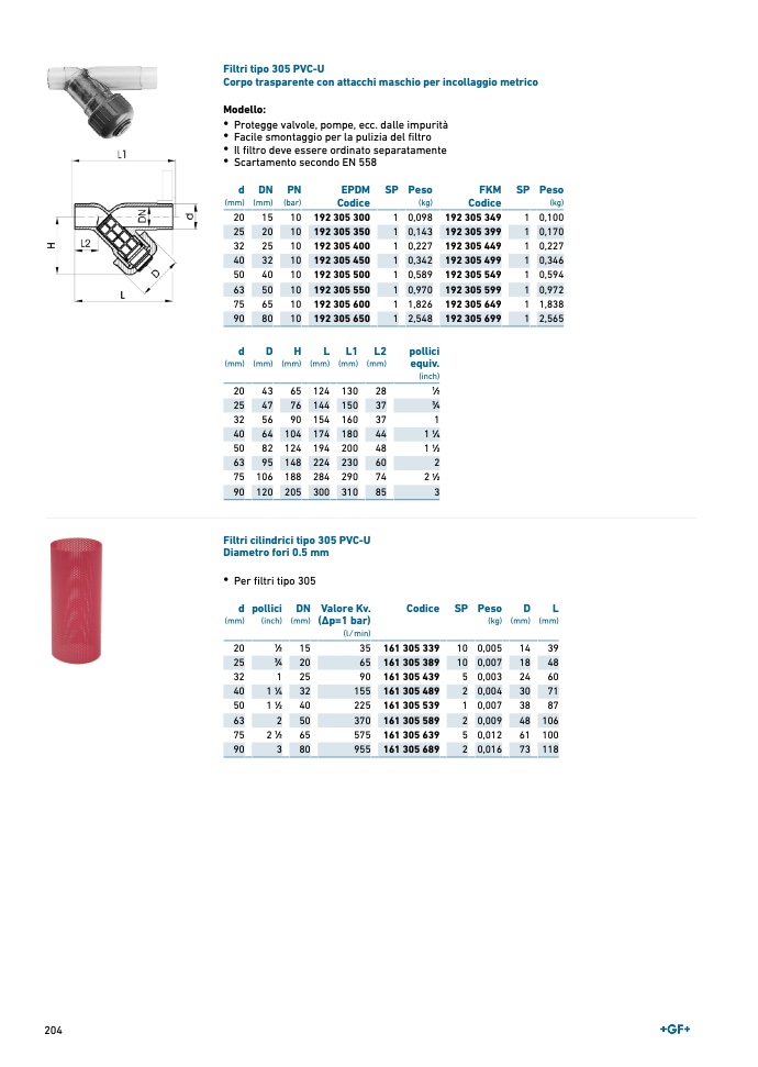 Corpo trasparente con attacchi maschio per incollaggio metric