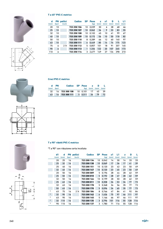 T a 90° ridotti PVC-C metrico