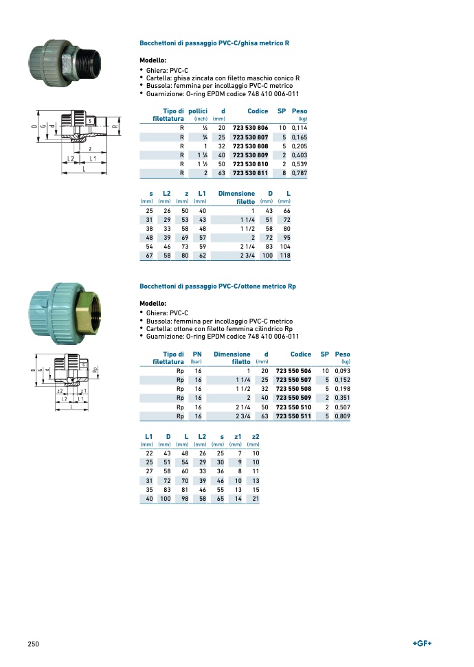 Bocchettoni di passaggio PVC-C/ghisa metrico R