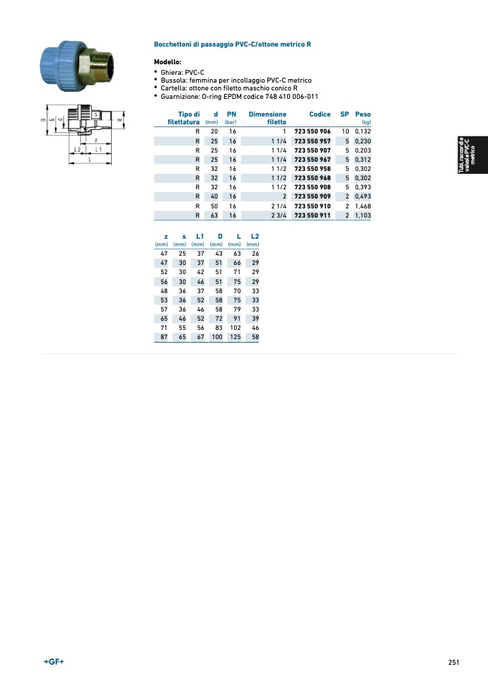 Bocchettoni di passaggio PVC-C/ottone metrico
