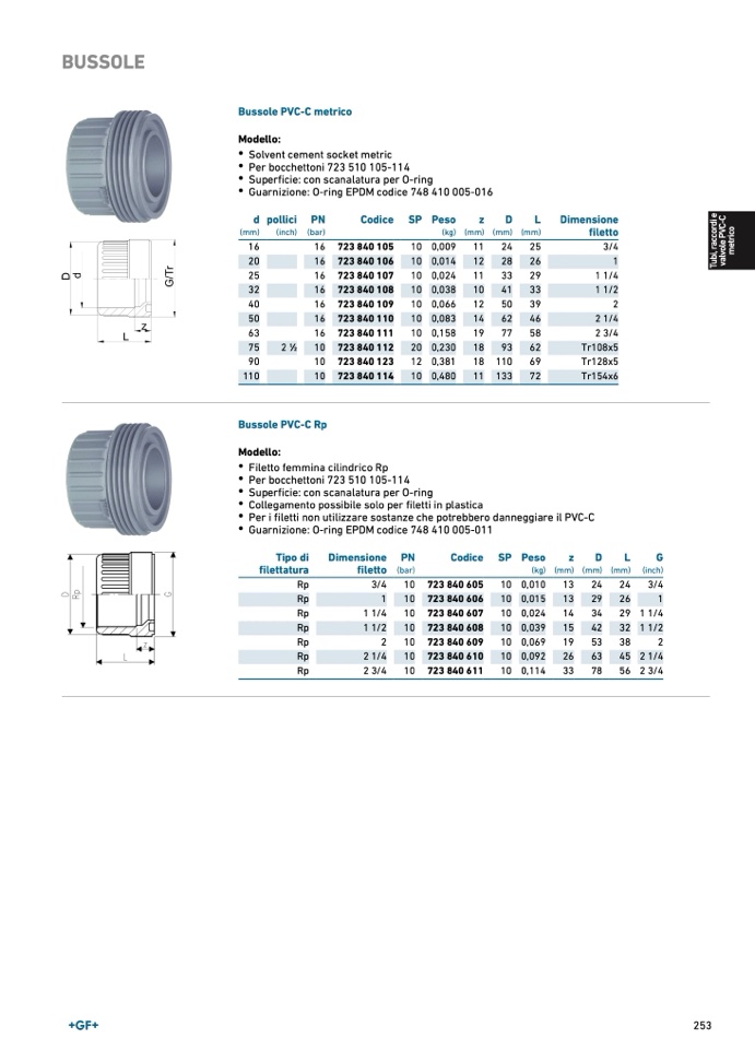 Bussole PVC-C metric